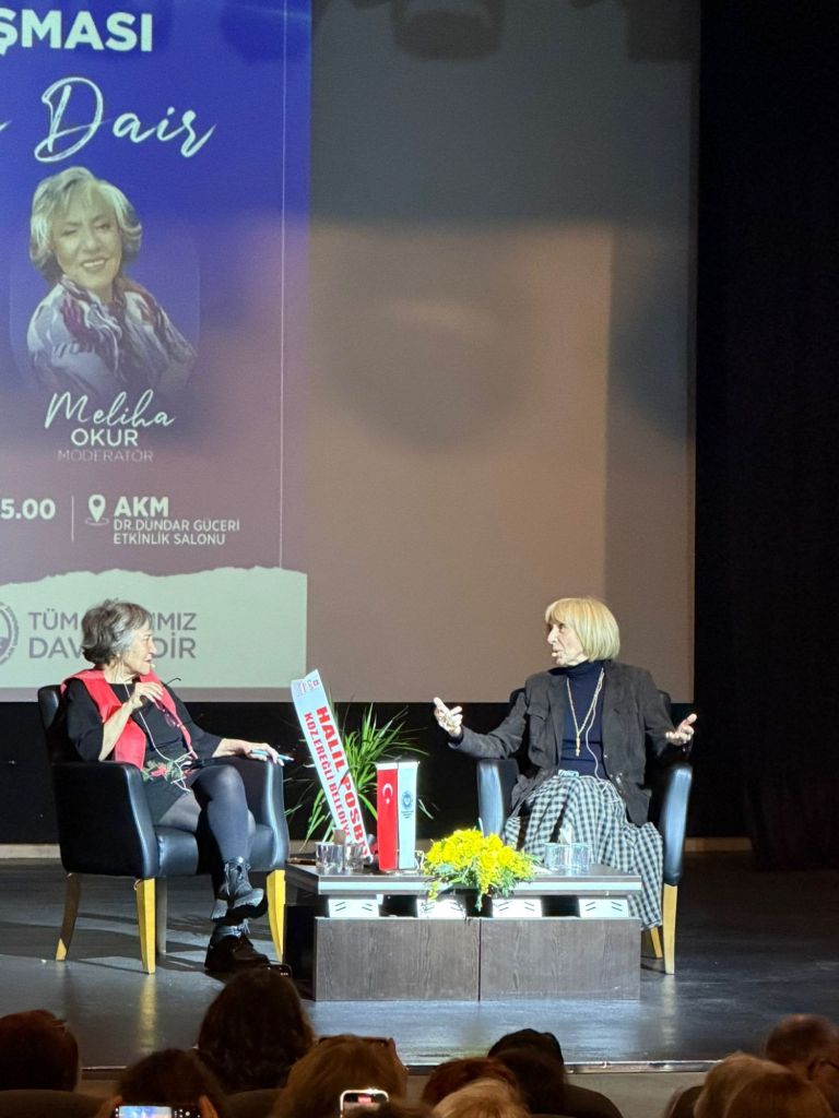 Salona adım attığımızda karşılaştığımız manzara tek kelimeyle büyüleyiciydi. Salon hınca hınç doluydu; koltuklarda yer kalmamış, merdiven boşluklarına kadar taşan o muazzam kalabalık, edebiyata duyulan özlemin en somut kanıtıydı. Moderatör koltuğunda, eğitimiyle bu topraklara kök salmış, Ankara doğumlu keskin zeka Meliha Okur; karşısında ise 85 yıllık ömrüne koca bir Türkiye panoraması sığdırmış Ayşe Kulin vardı.